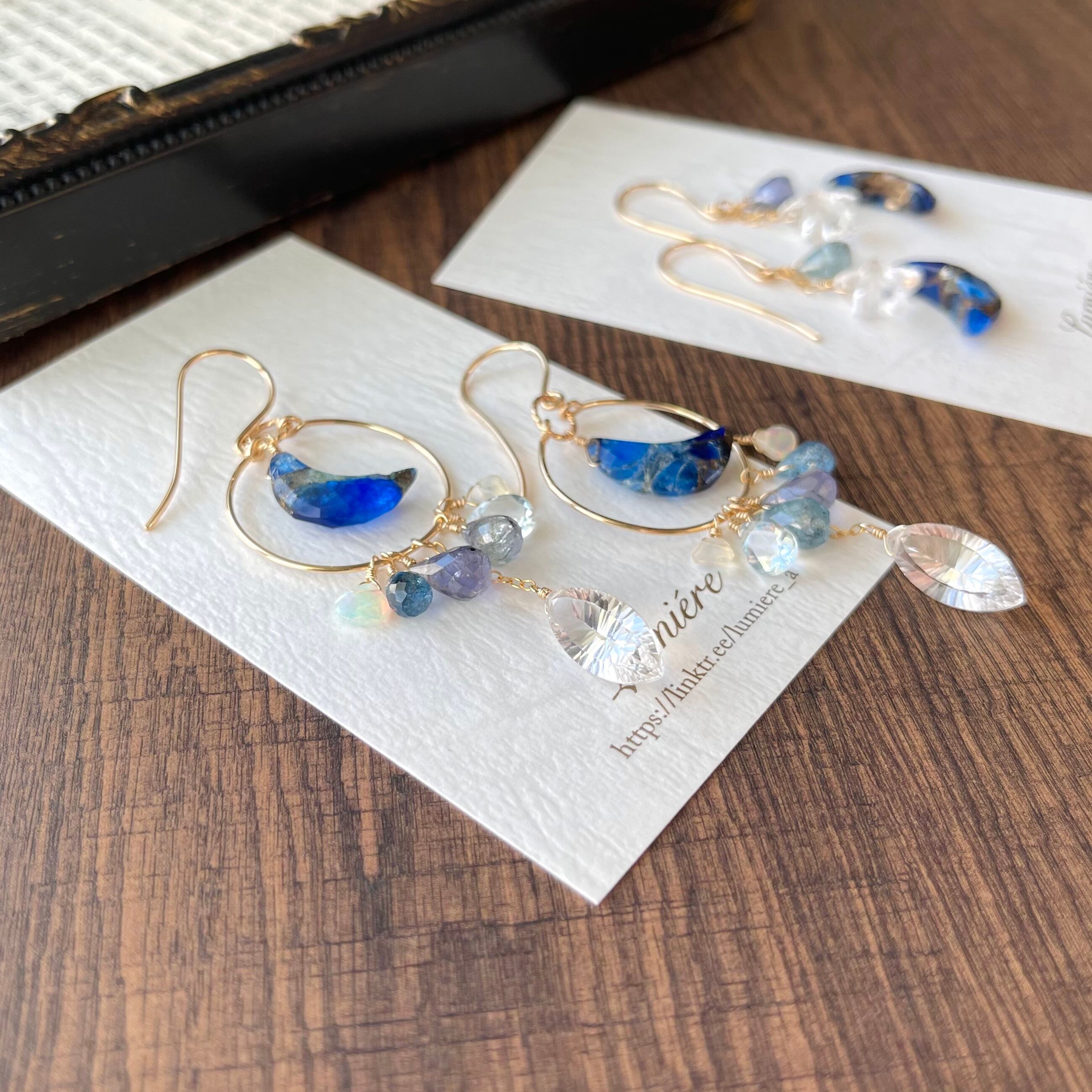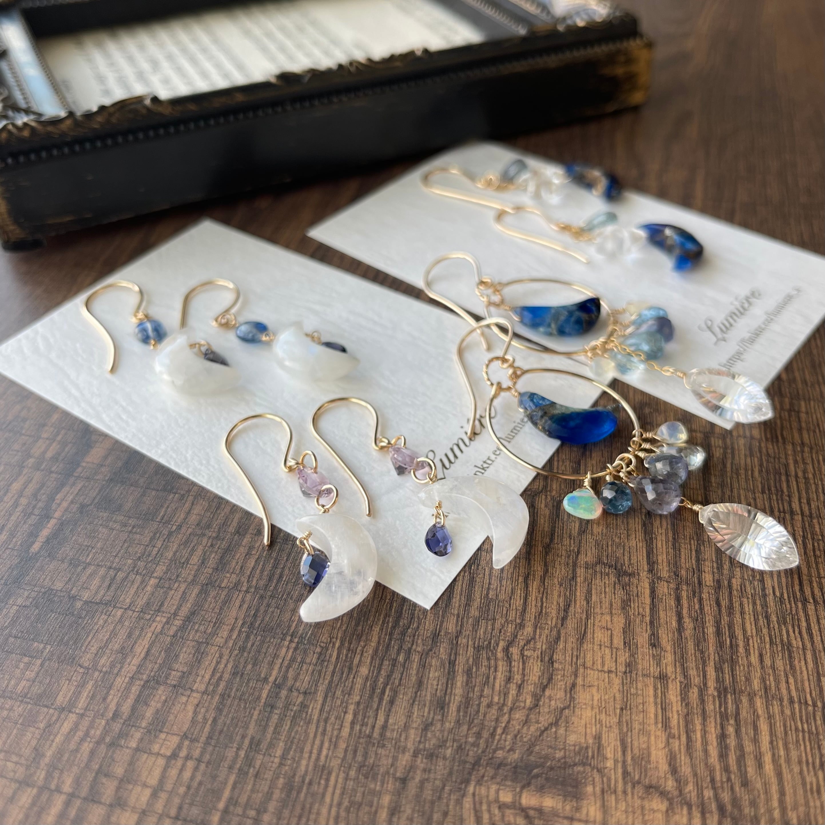 #Lumiere #天然石 #ピアス #14kgf #ギフト #プレゼント #誕生日 #誕生石 #コッパーラピスラズリ #ラピスラズリ #クリスタルクォーツ #クォーツ #タンザナイト #アイオライト #アクアマリン #エチオピアオパール #オパール #月 #三日月 #ムーン #星 #スター #夜空 #星空 #ブルー