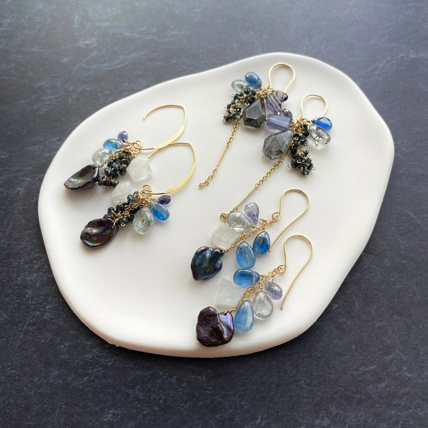 #Lumiere #天然石 #ピアス #14kgf #ブラックパール #モスアクアマリン #カイヤナイト #アイオライト #レインボームーンストーン #サファイア #ギフト #プレゼント #誕生日 #ホワイトデー #母の日 #誕生石 #ブルー #ブラック #ネイビー