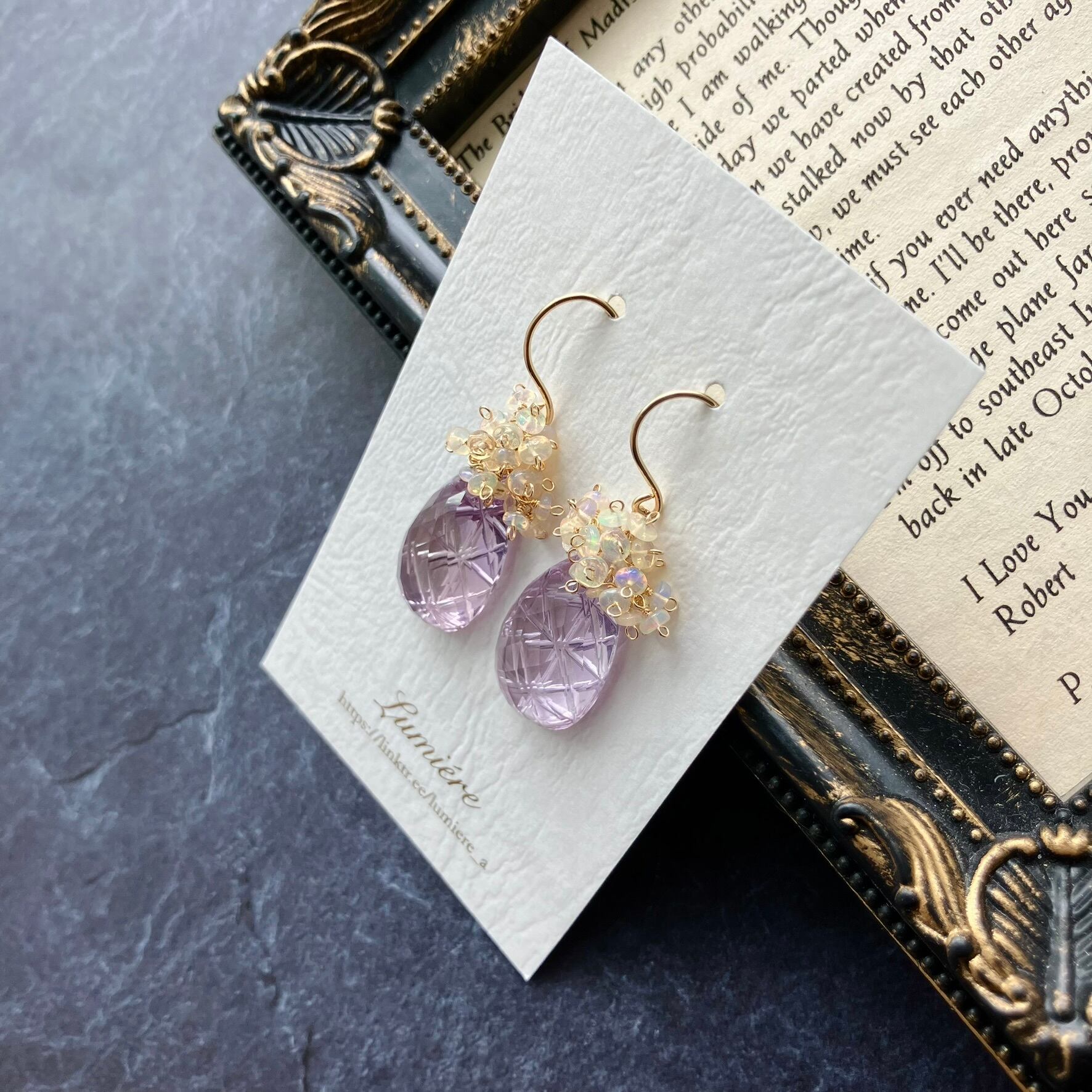 #Lumiere #天然石 #ピアス #14kgf #ピンクアメジスト #アメジスト #エチオピアオパール #オパール #遊色 #パープル #ラベンダー #切子 #カービング #大粒 #ギフト #プレゼント #誕生日 #ホワイトデー #母の日 #誕生石
