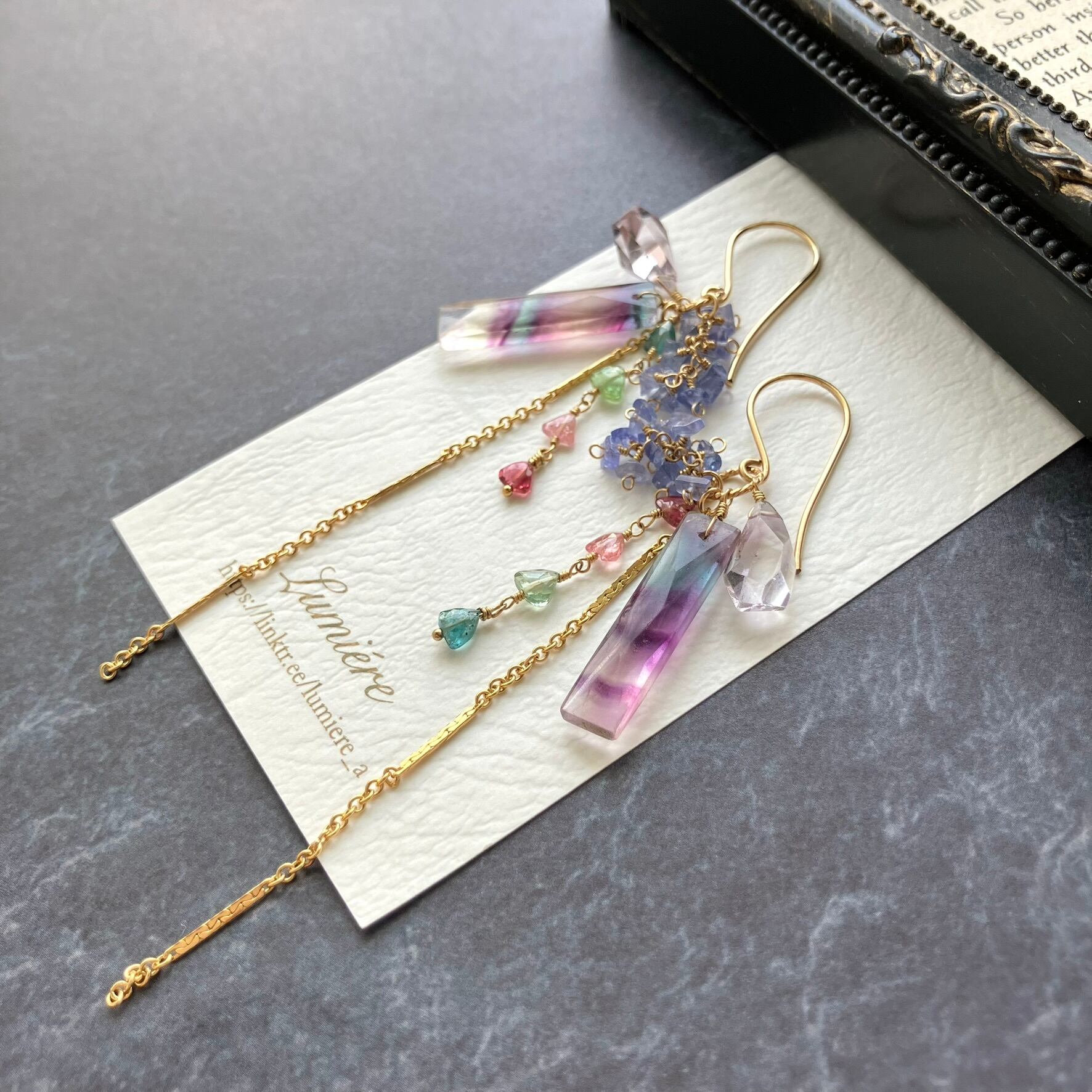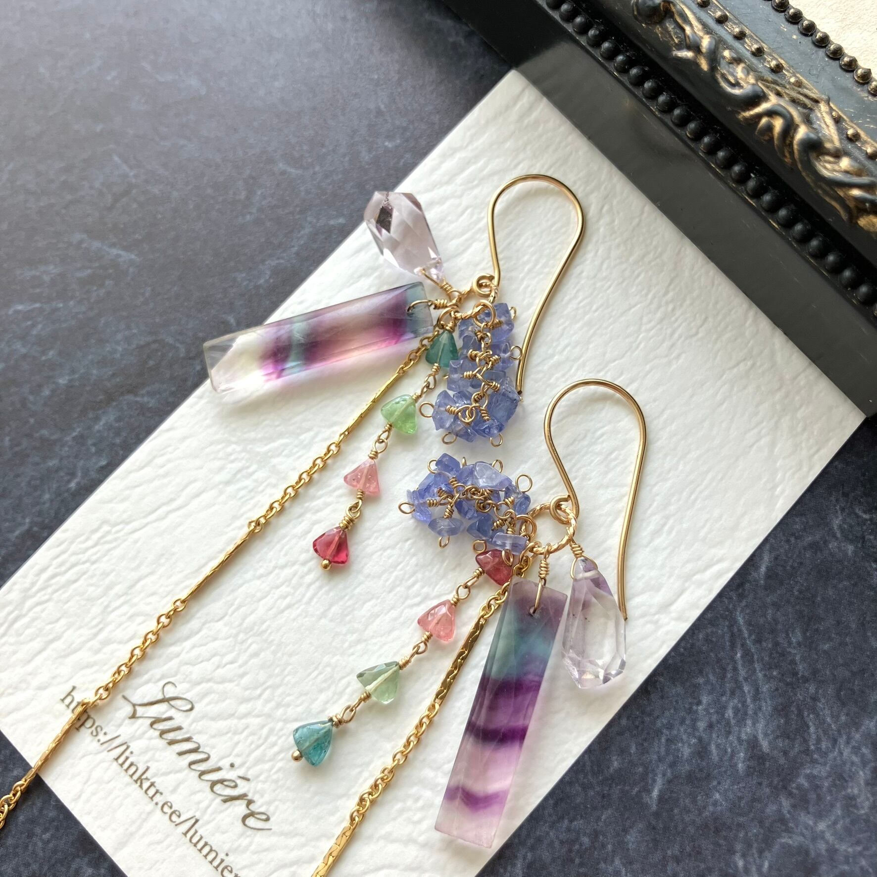 14kgf*フローライト&トルマリン&タンザナイトのピアス