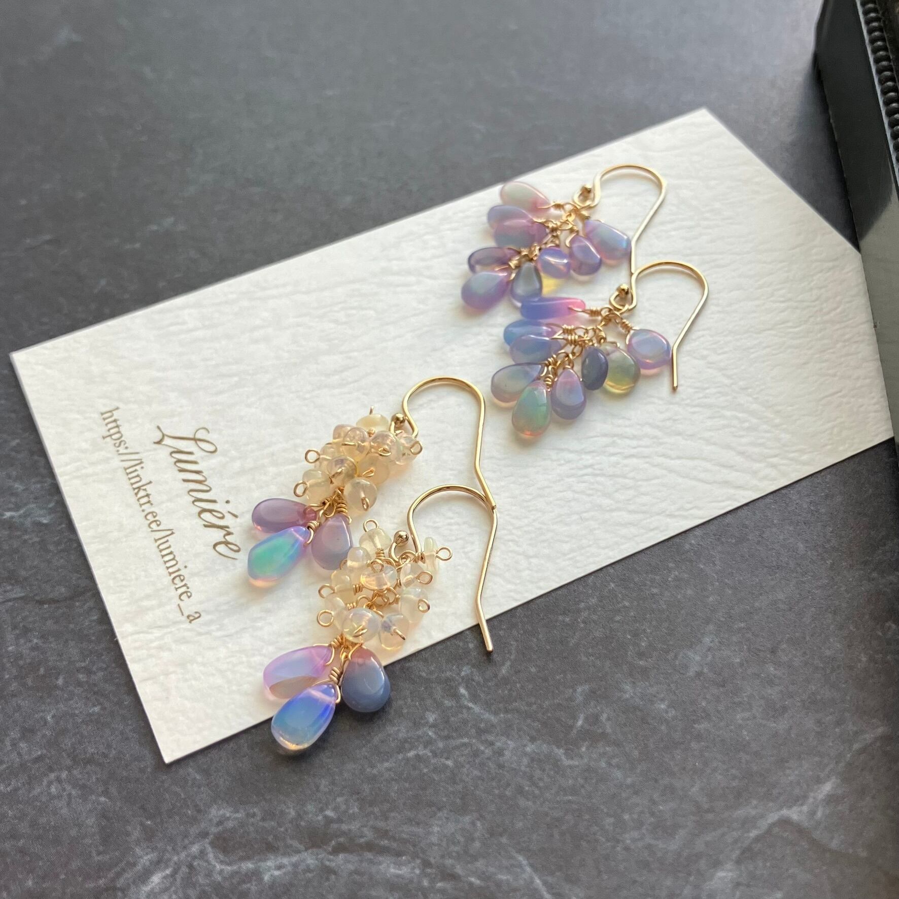 #Lumiere #天然石 #ピアス #14kgf #秋 #秋冬 #夢色 #パープル #ゆめかわ #誕生石 #エチオピアオパール #オパール #遊色 #ラベンダー #ギフト #プレゼント #誕生日 #ホワイトデー #母の日 #誕生石