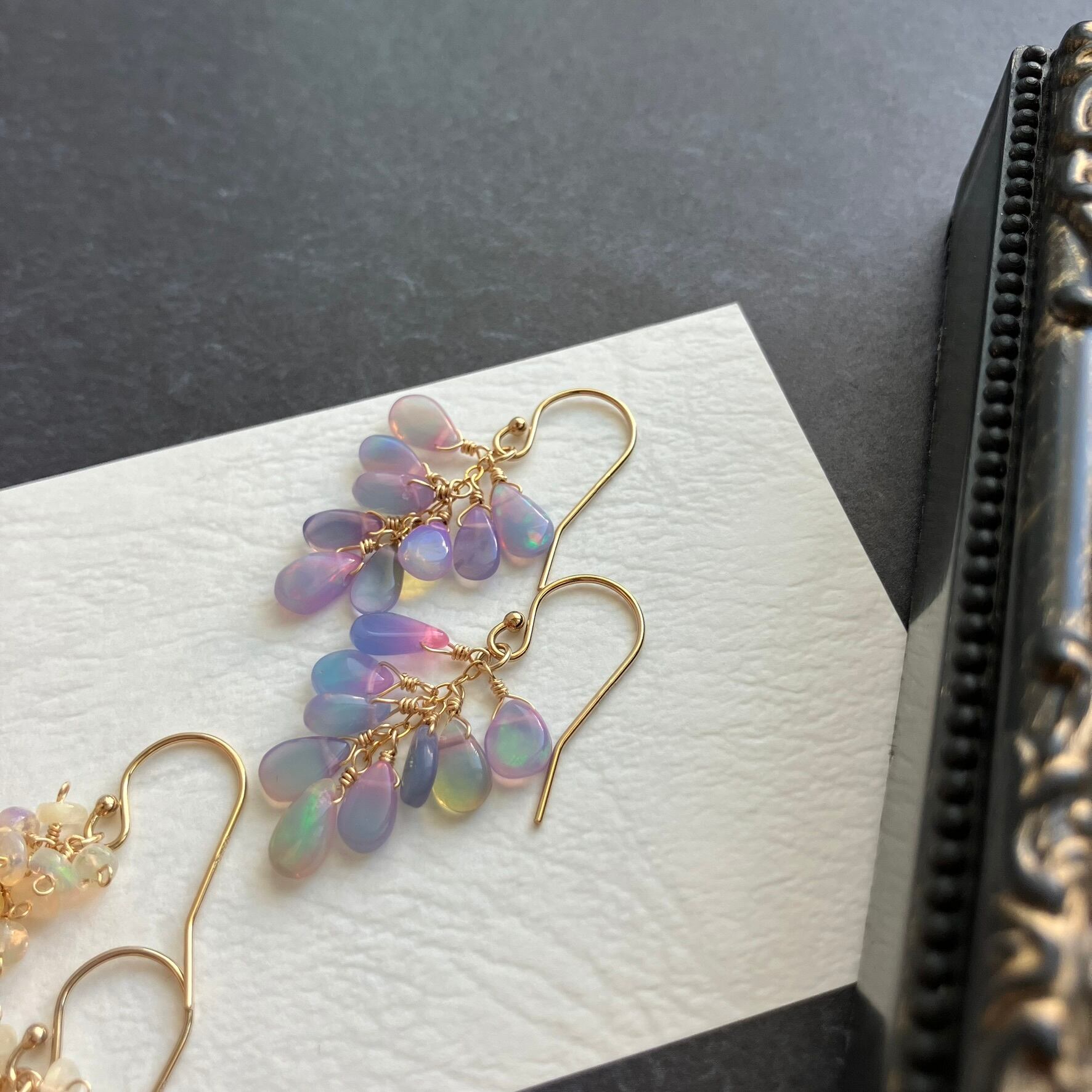 14kgf*夢色カラーオパール&小粒オパールのピアス