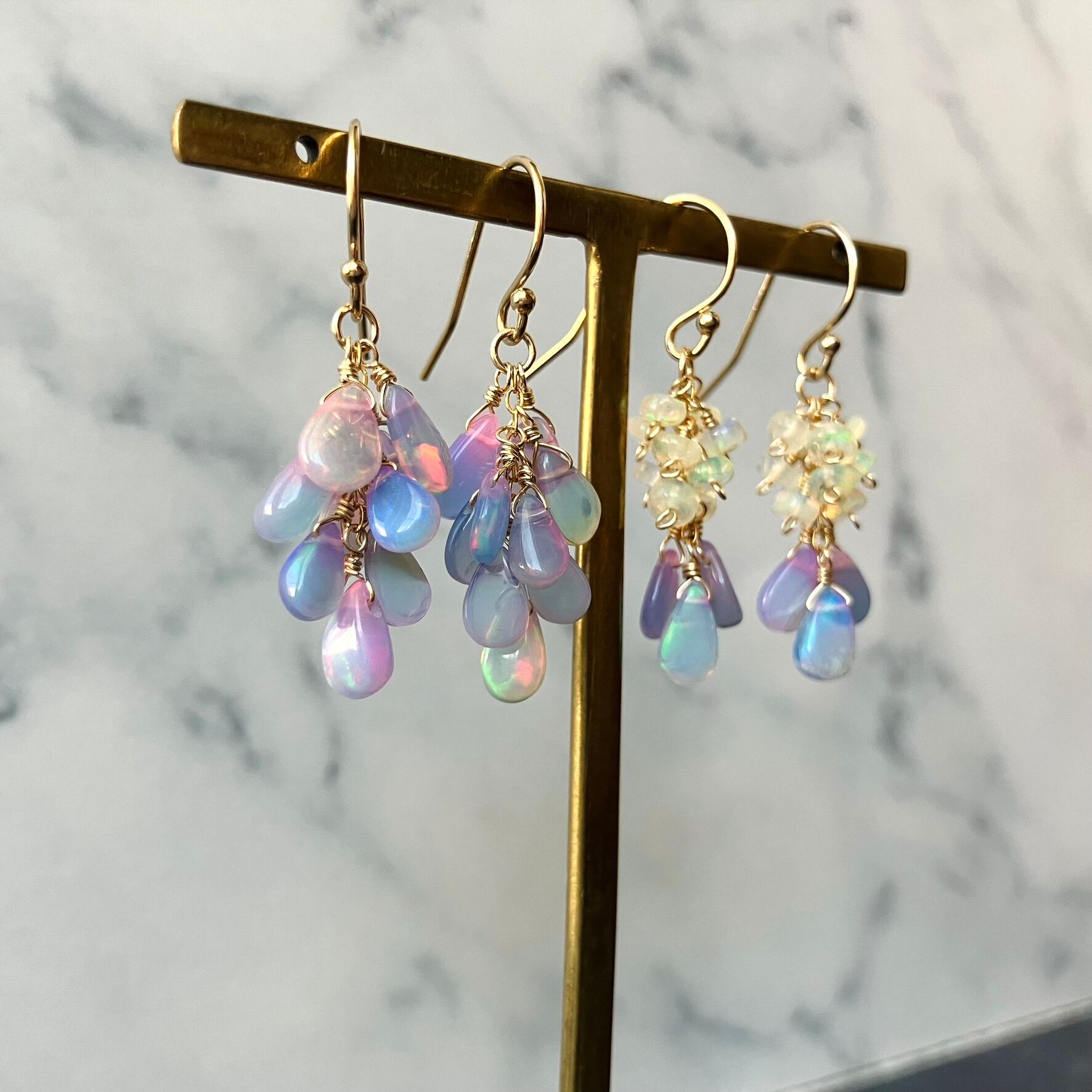今回は贅沢に18粒使用したカラーオパールのみのデザインと、小粒のエチオピアオパールと合わせたデザインをご用意いたしました。