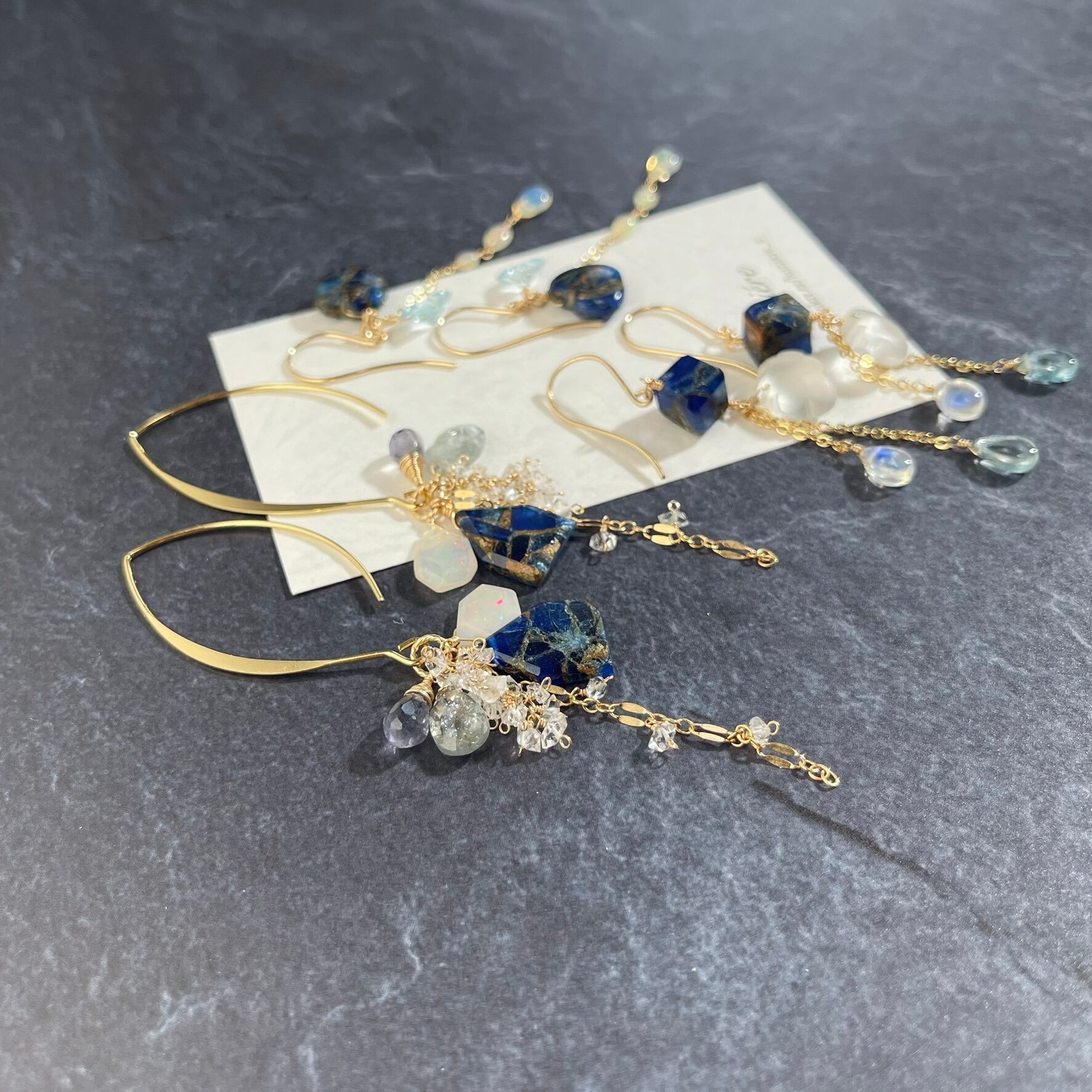 14kgf*コッパーラピスラズリ&雲と雨のピアス