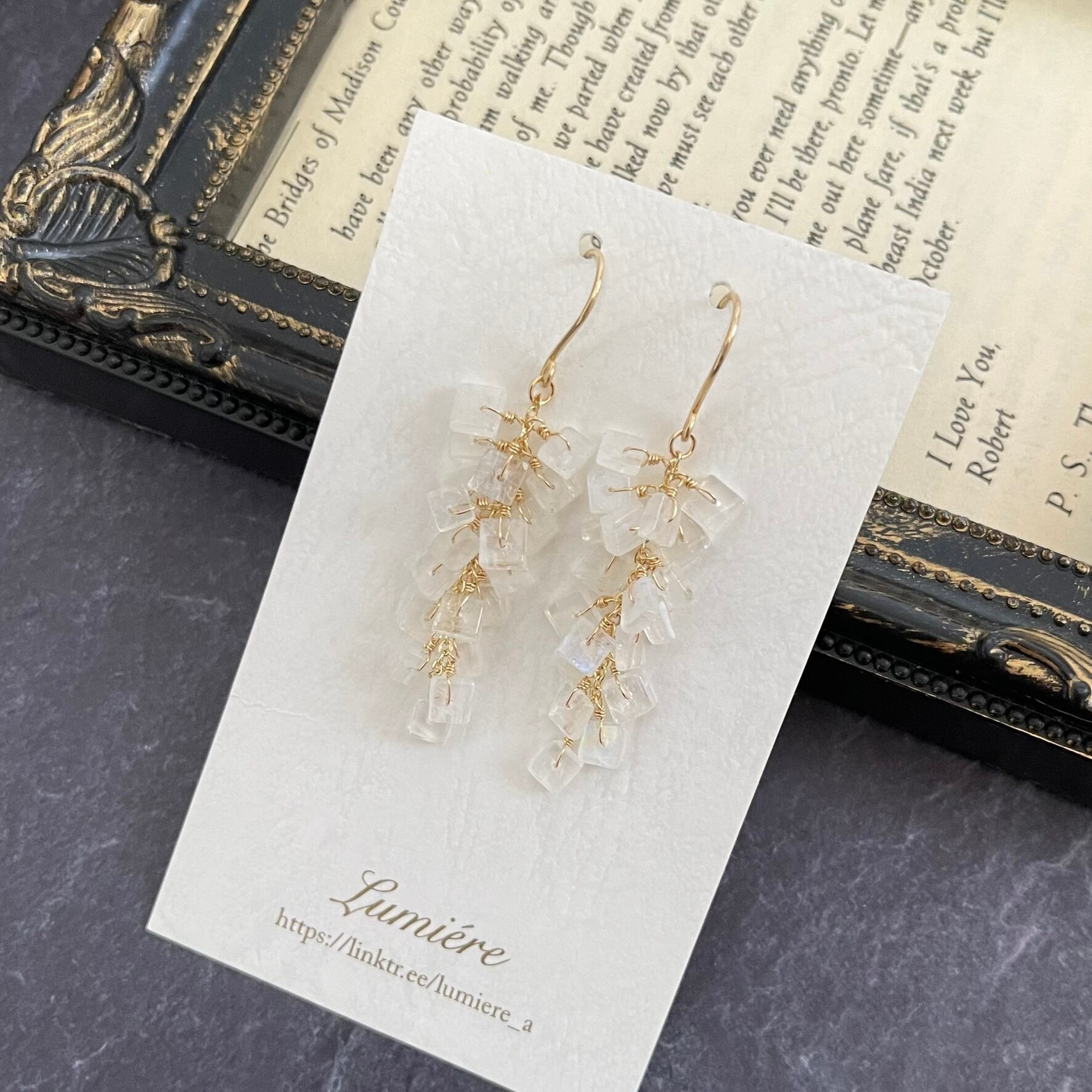 14kgf*ブルームーンストーンヘイシのしゃらしゃらピアス