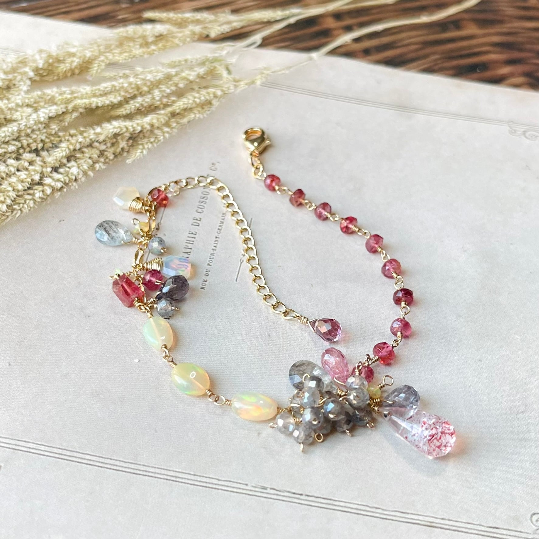 14kgf*ピンクトルマリン&エチオピアオパール&スピネルのラグジュアリーブレスレット